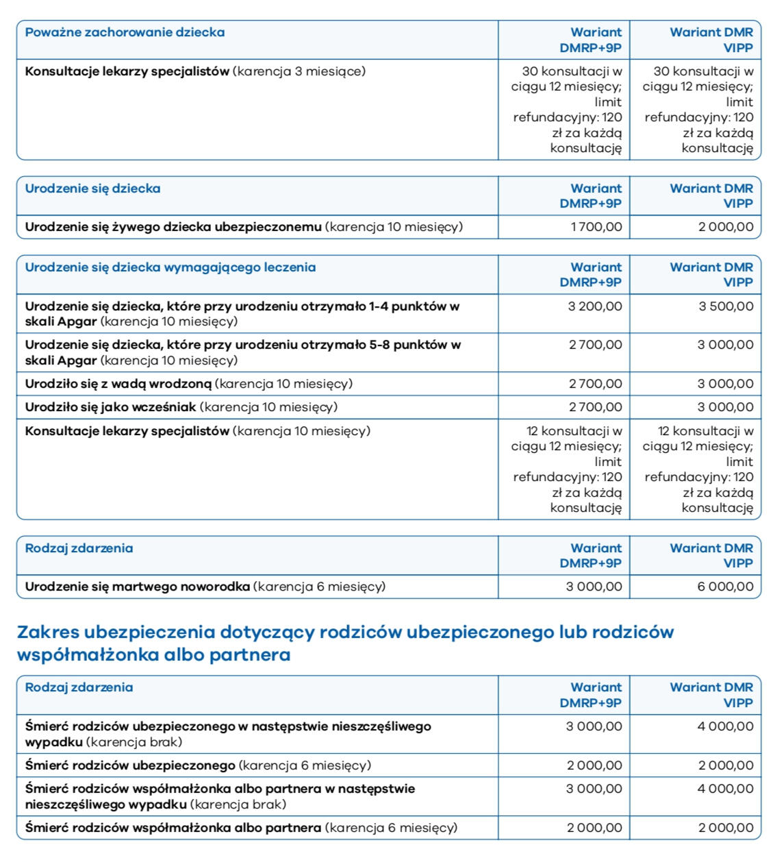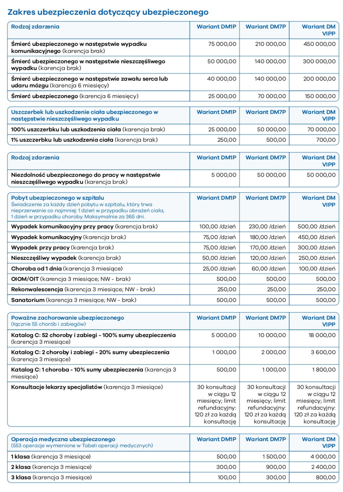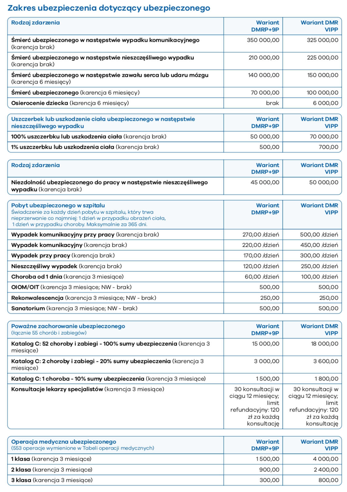 ✓ Śmierć w wypadku komunikacyjnym✓ Uszczerbek lub uszkodzenie ciała (progresja do 400%)✓ Pobyt w szpitalu po wypadku