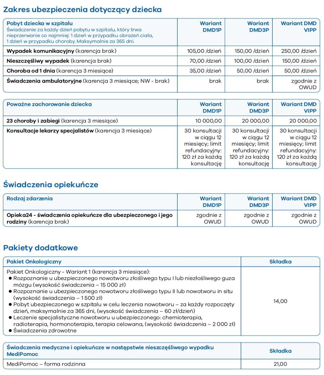 ✓ Operacje medyczne dziecka✓ Konsultacje lekarzy specjalistów✓ Pobyt dziecka w szpitalu (po chorobie i po wypadku)✓ Uszczerbek dziecka po wypadku (progresja do 400%)